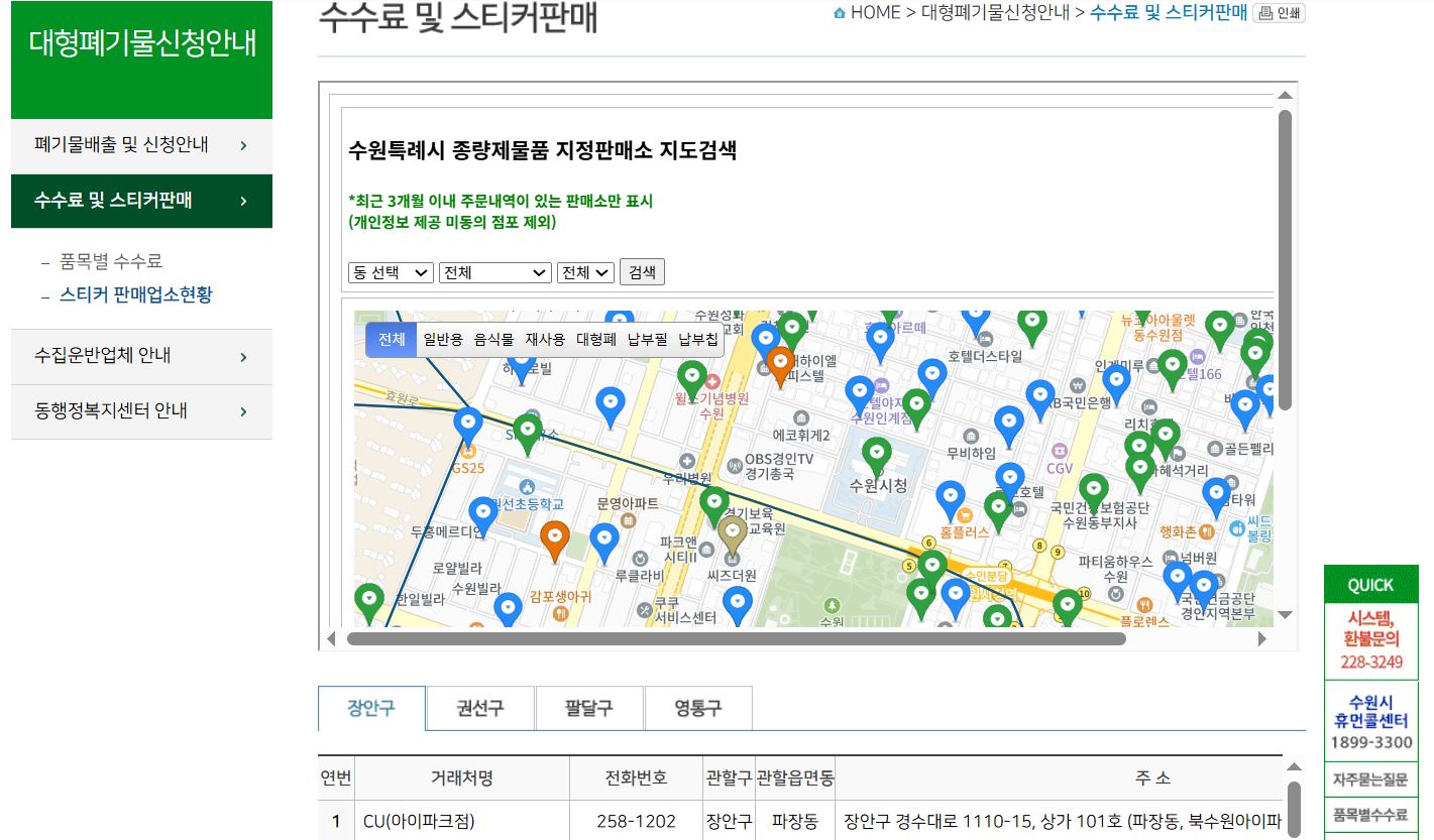 그래도 헛걸음 하실수 있으니, 수원시 스티커 판매업소 현황 공유해요! (수원시에서 제공하고 있어 업데이트 됩니다!)
