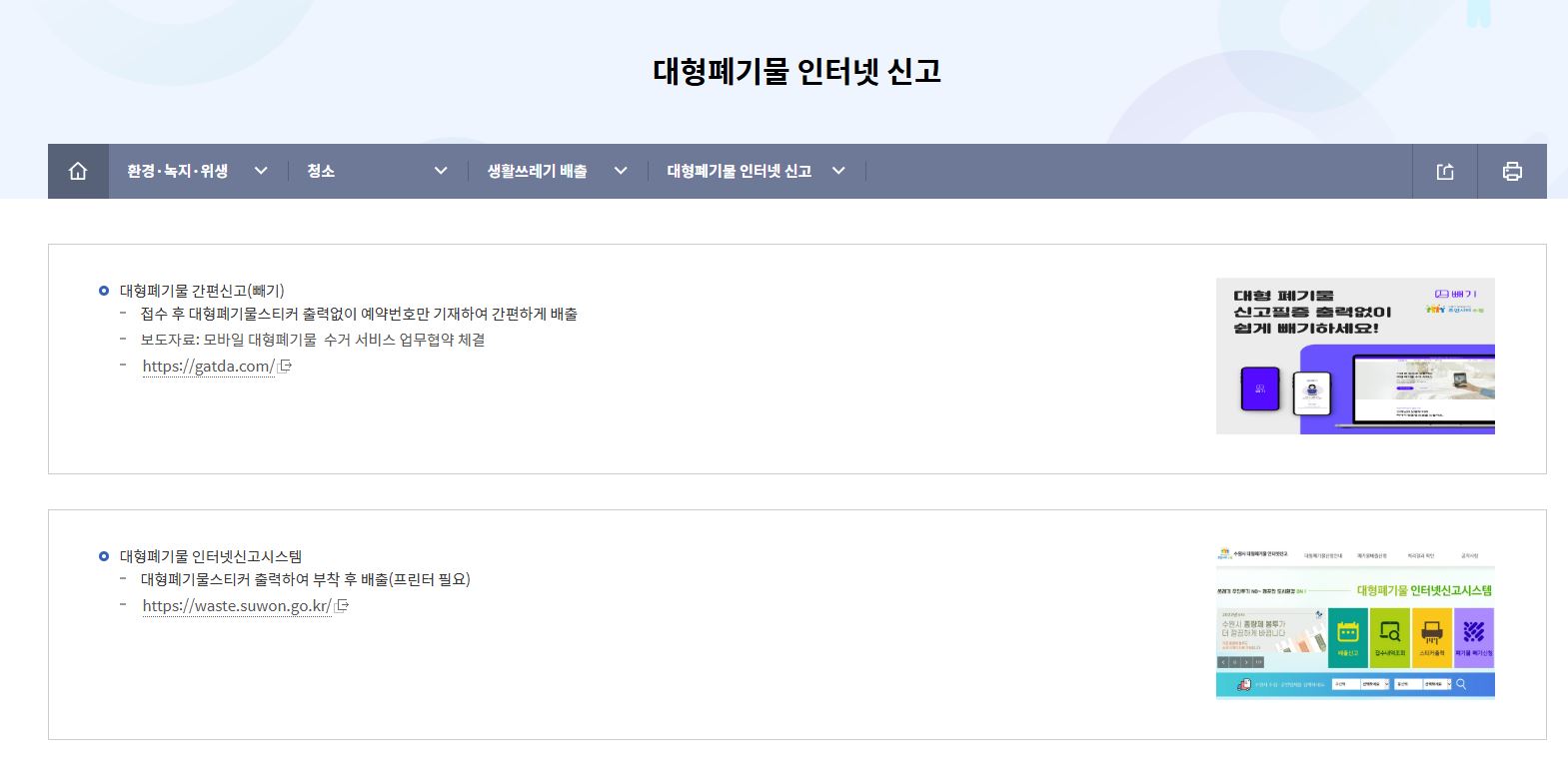 수원시의 경우 아래와 같이 2가지 방법으로 안내하고 있었습니다