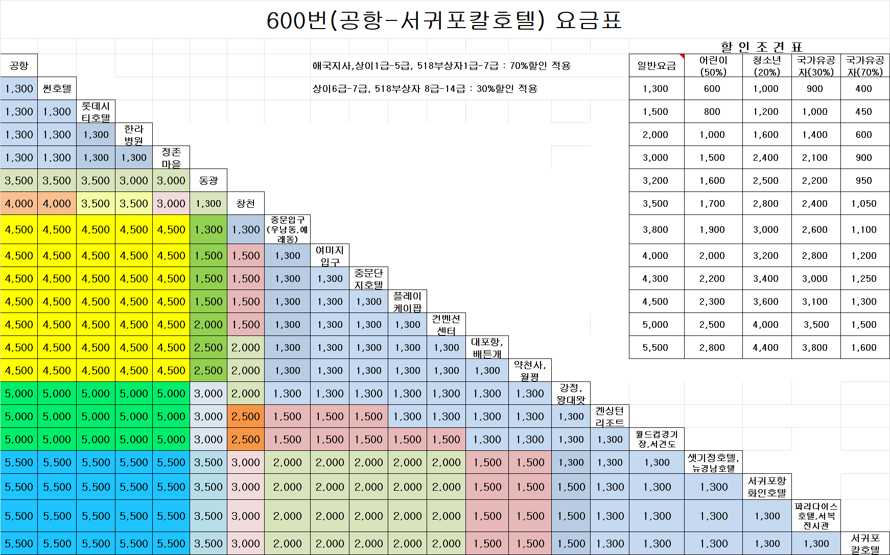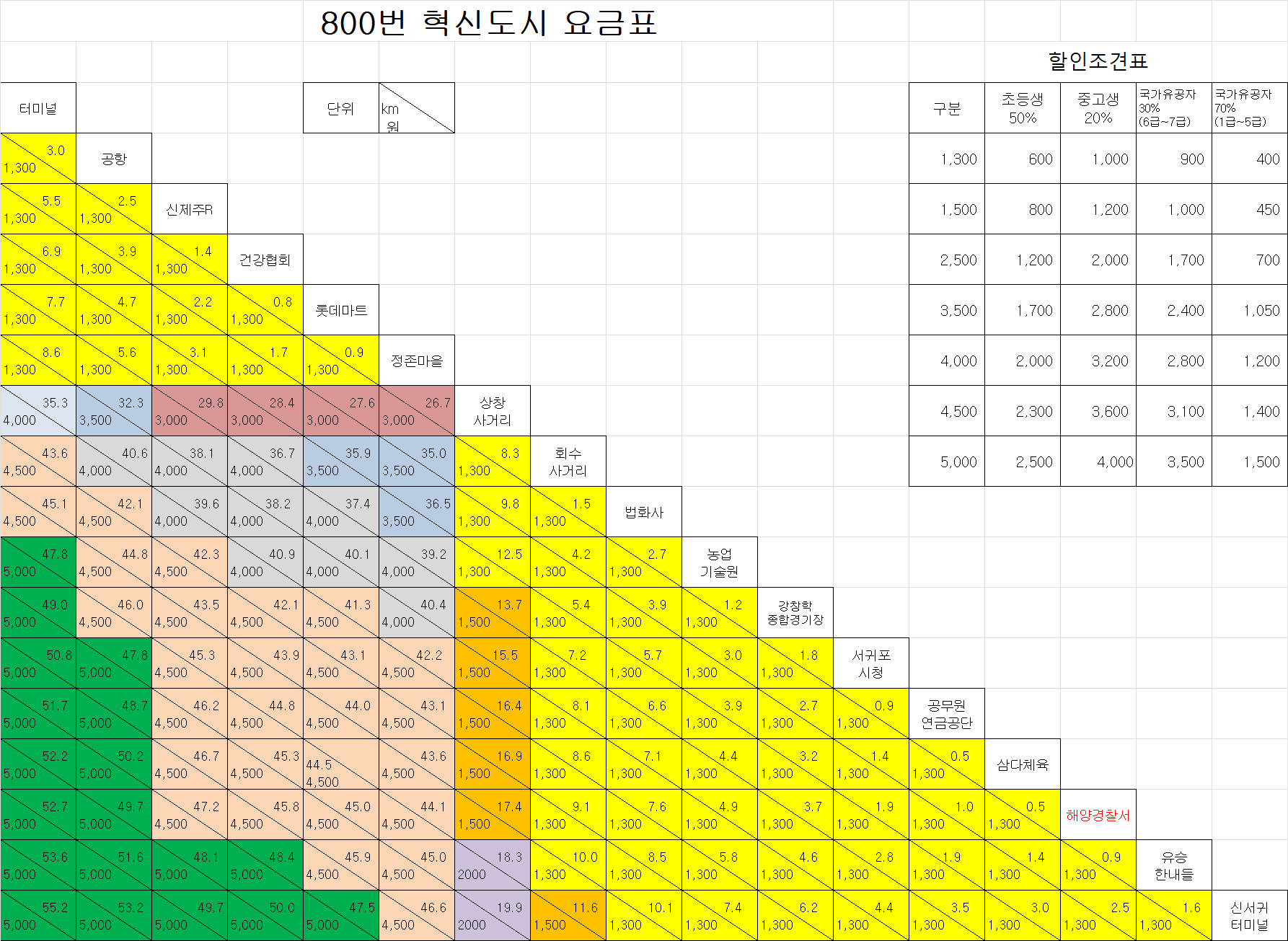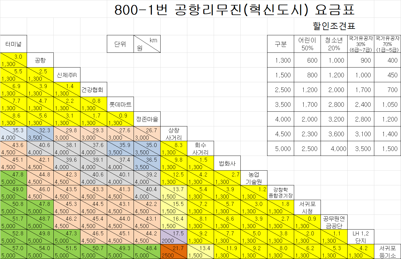 공항 리무진을 이용하면 제주공항에서 시내까지 최대 5,000원(위에 요금표 참고)이면 접근이 가능한데,